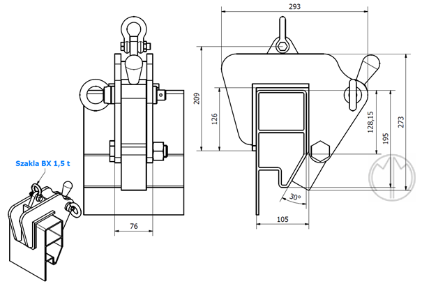 The clamp is designed for lifting and transporting the structure with the fixing place on the profile corresponding to the construction of the handle